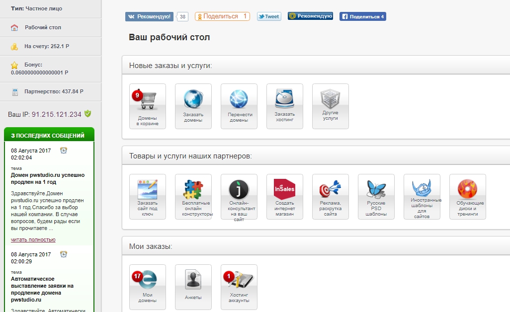 Domains registered with us, you can to connect to any web hosting , an online site builder, a dedicated server or vps. Excellent work on the mail Yandex, Google, Mail, and others.